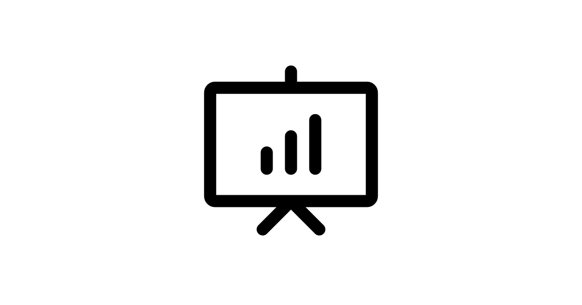 The Presentation icon represents a visual display or slideshow, often used in educational or business contexts to communicate information.