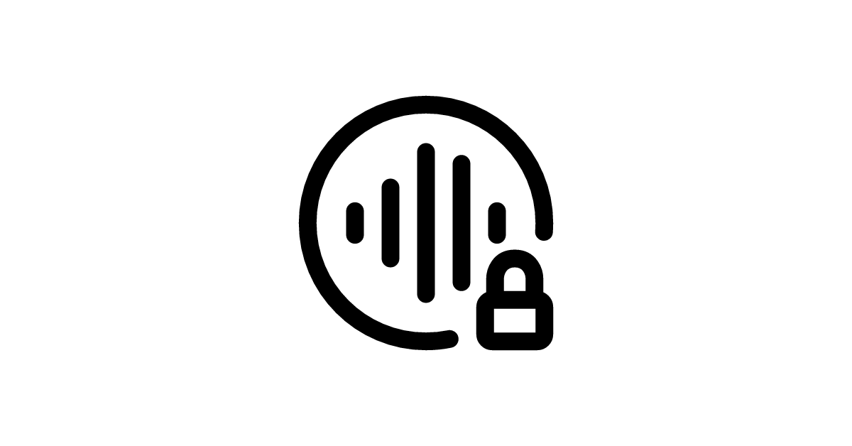 The voice-lock-circle icon represents a voice authentication or audio security symbol.