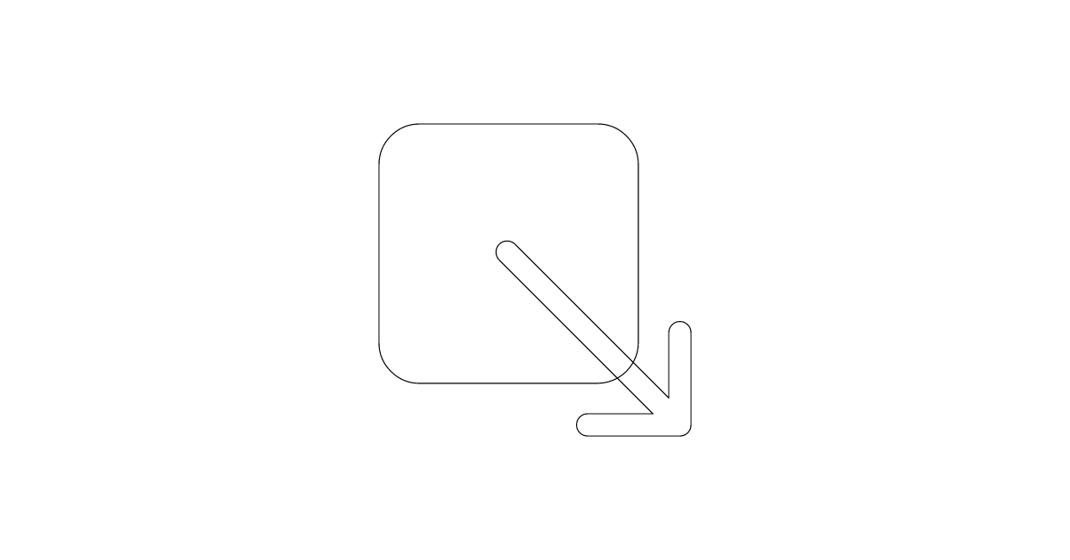The arrow-down-right-box icon represents a directional symbol used to indicate movement or action in a downward and right direction, enclosed in a box.