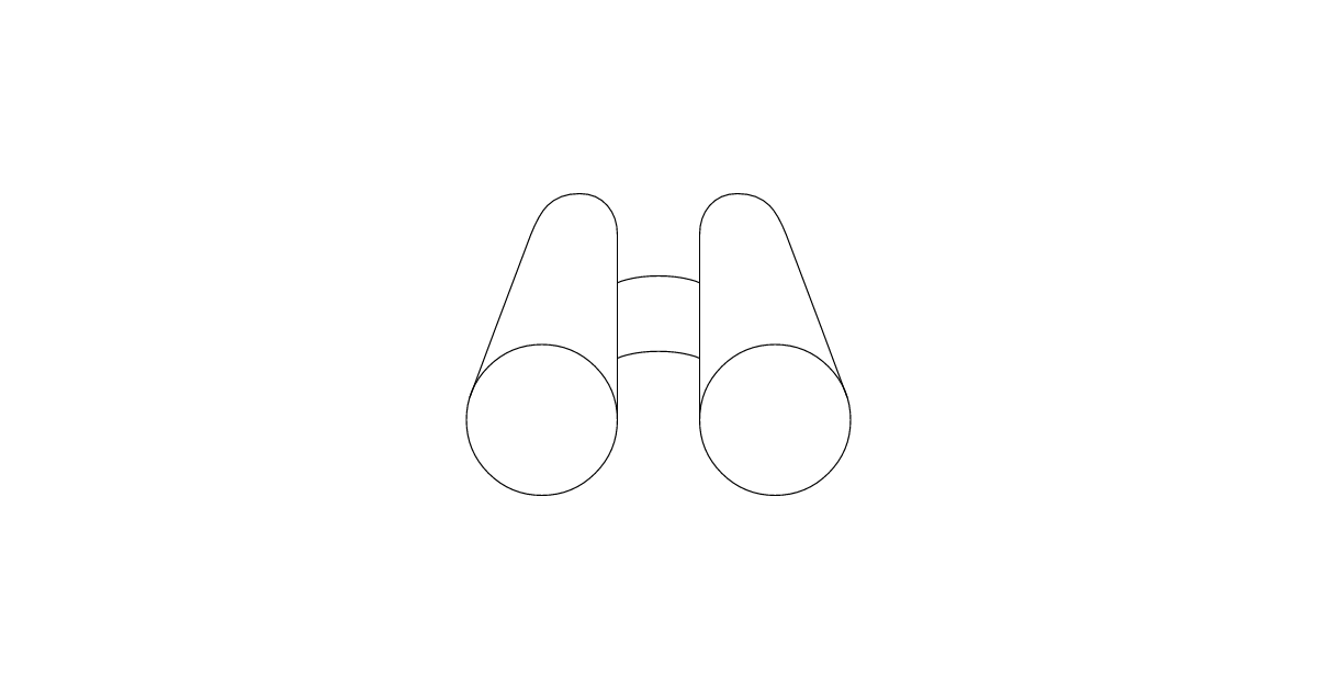 The binoculars-outline icon represents a pair of binoculars without a fill, often used to symbolize searching, exploring, or discovering something.