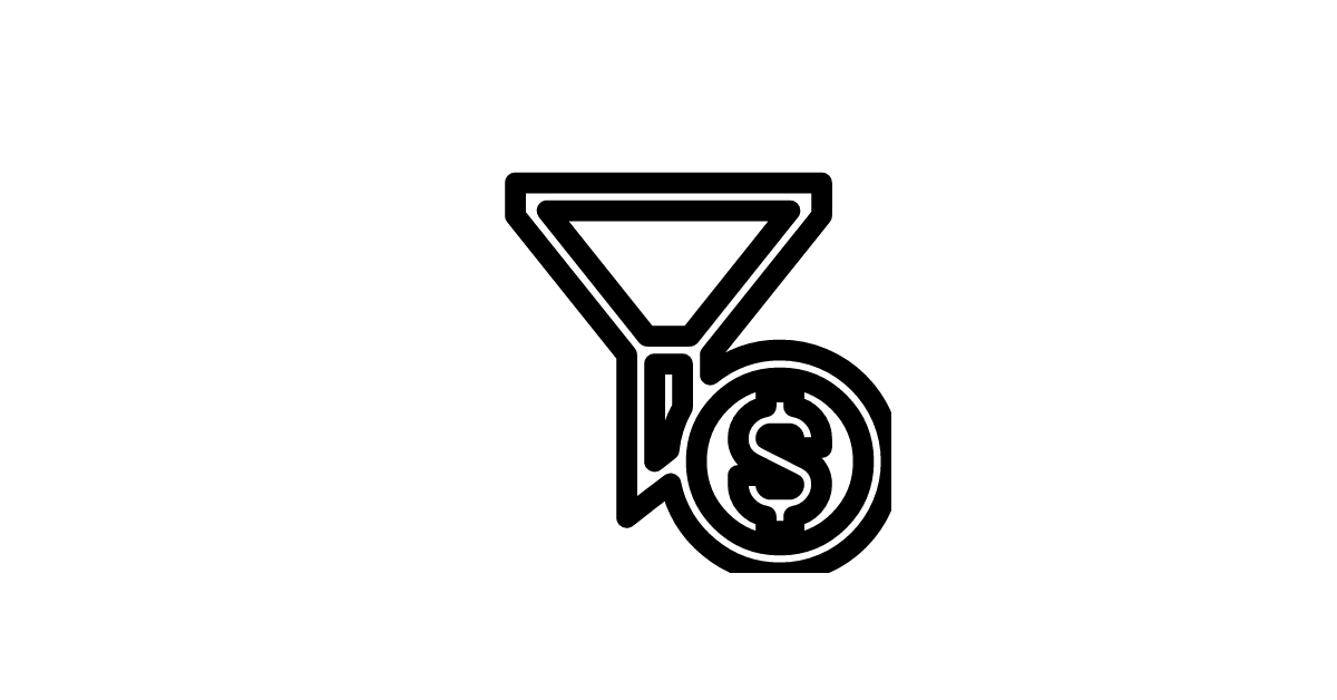 The funnel-dollar icon represents a marketing or sales funnel with a dollar sign, often used to illustrate the process of converting leads into customers and generating revenue.