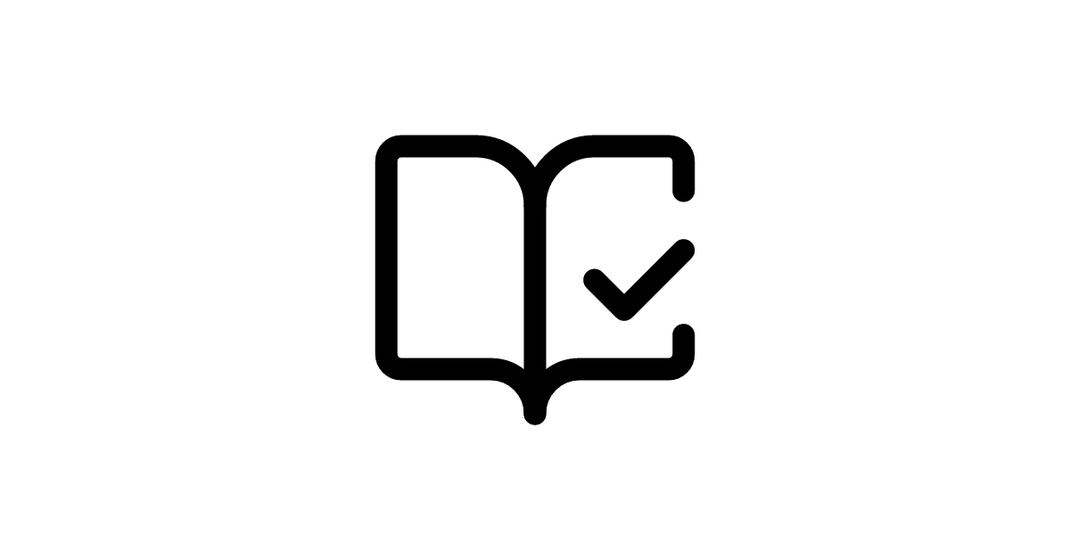 Featuring an open book with a checkmark overlay, this icon represents completed reading assignments and verified learning achievements in educational assessment applications.