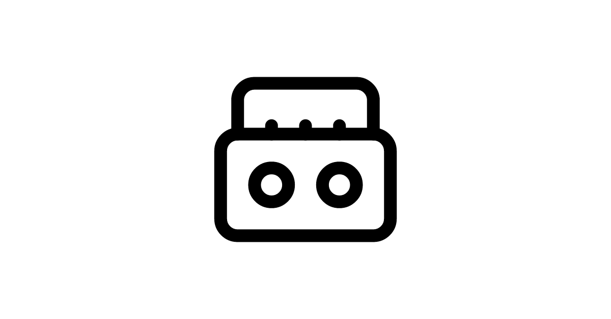 The boom-box icon represents portable audio systems and retro music playback functionality in media and entertainment applications.