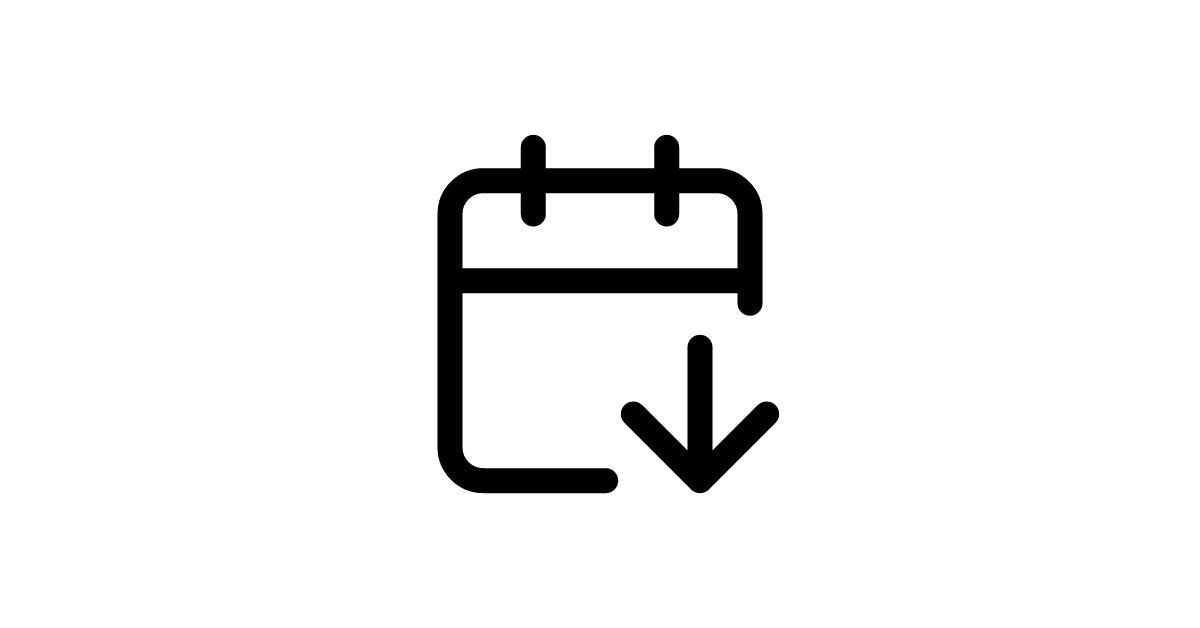 The calendar-arrow-down icon represents schedule export and calendar data download functionality in calendar management and data backup applications.