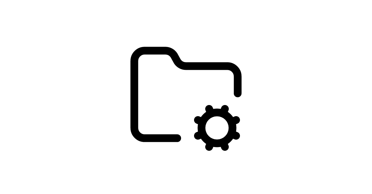The folder-cog icon represents configuration directories and administrative settings containers in system management and application configuration environments.