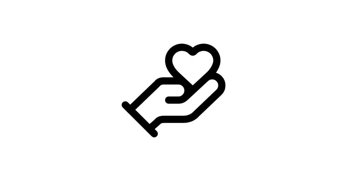 The hand-heart icon represents charitable giving, compassionate care, and volunteer support in nonprofit and community service applications.