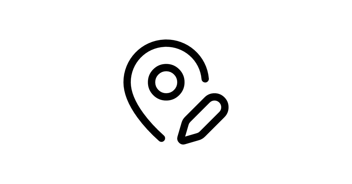The map-pin-pen icon represents location editing and marker customization functionality in mapping and annotation applications.