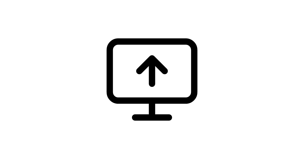 Featuring an upward-pointing arrow within a desktop monitor frame, the monitor-up icon represents content uploading and data transmission functionality in display and cloud integration applications.
