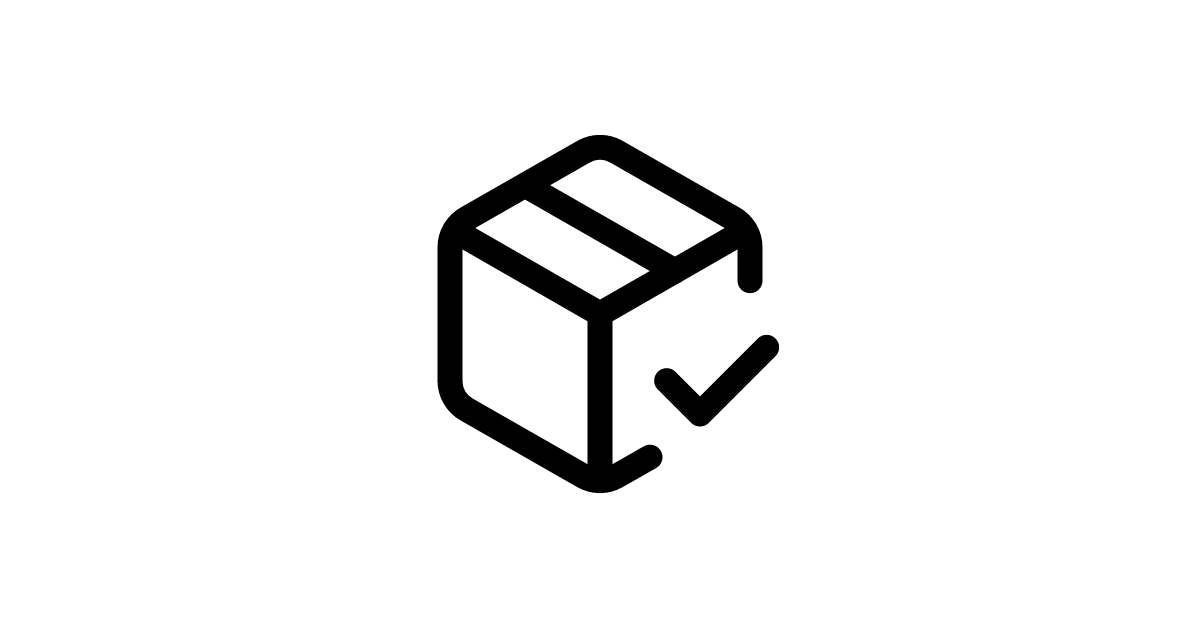Featuring a checkmark overlay on a shipping container, the package-check icon represents successful delivery confirmation and completed shipment verification in logistics and e-commerce tracking systems.