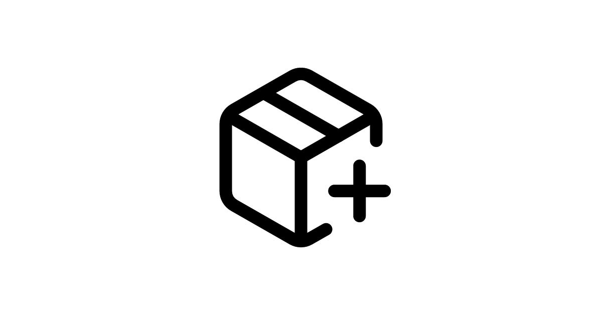 Featuring a plus symbol overlaid on a shipping container, this icon represents package creation and order addition functionality in logistics and inventory management systems.