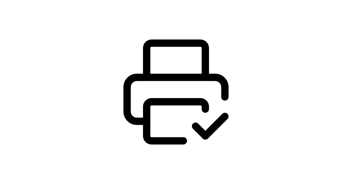 Featuring a printer with a checkmark indicator, the printer-check icon represents successful print operations and verified document output in office management applications.