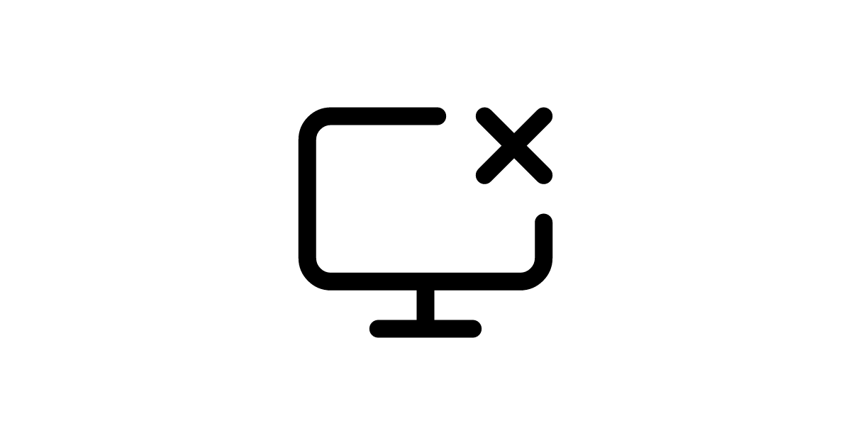 Featuring a monitor with a crossed-out sharing indicator, this icon represents disabled screen sharing and presentation termination in video conferencing applications.
