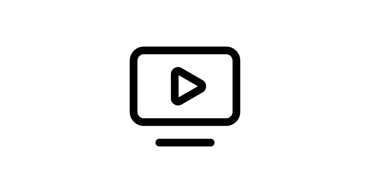 This icon combines minimalist television display with integrated play controls for video streaming interfaces.
