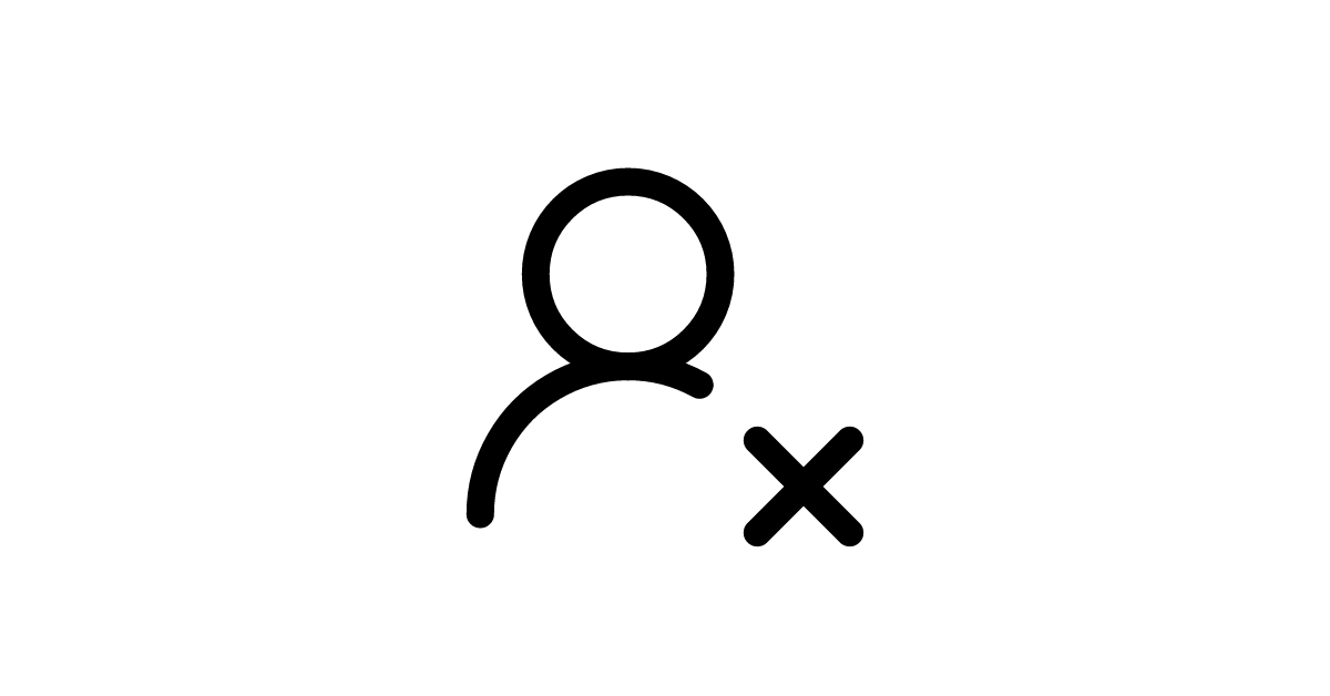 This icon combines rounded user styling with X symbol for user deletion and blocking in modern design systems.