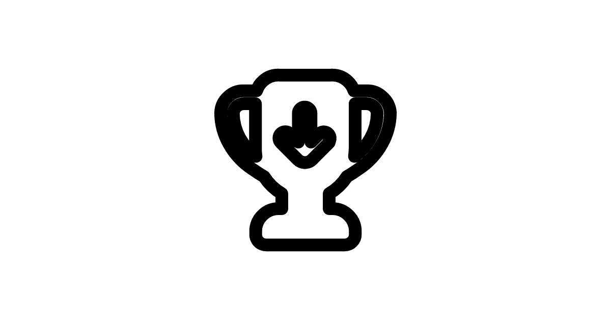 The trophy-down-fill icon represents a filled trophy or award moving downwards, often used to symbolize a decrease or loss in achievements or recognition.
