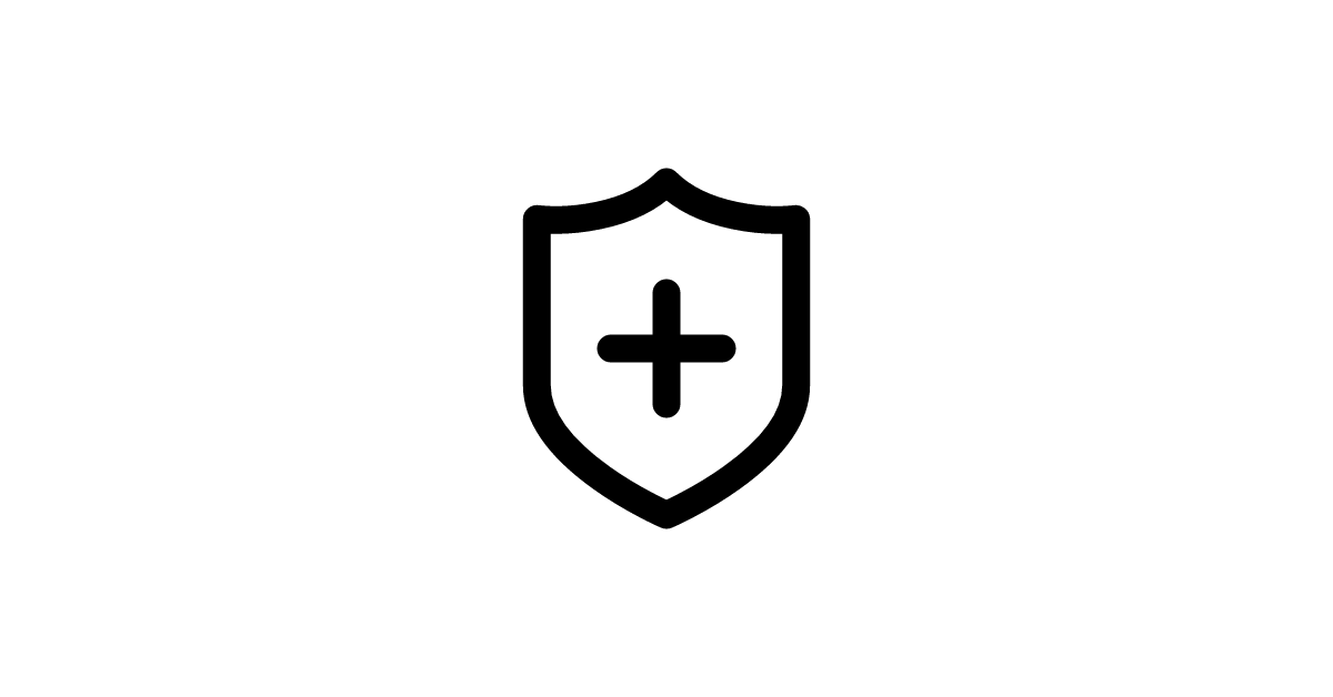 The shield-plus-line icon represents a shield with a plus sign and a line, symbolizing security, addition, and protection with a sense of continuity.