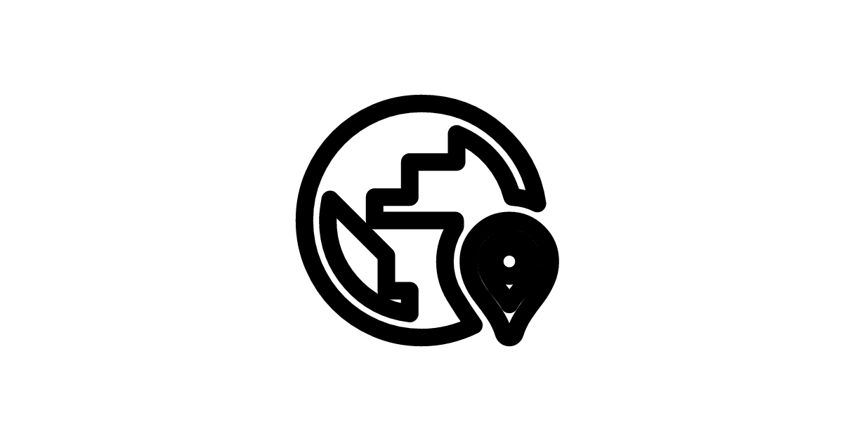 The Globe Location Pin Sharp icon represents a pinpoint on a map, symbolizing a specific geographic location.