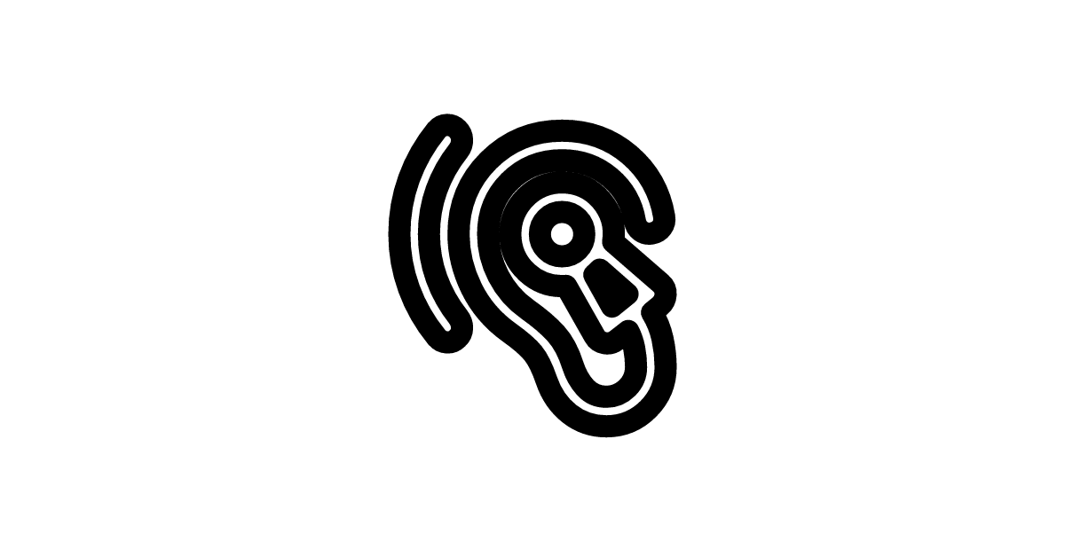 The hearing-aid-left-outline-rounded icon represents a hearing aid device with a rounded corner, often used to symbolize hearing assistance or auditory health.