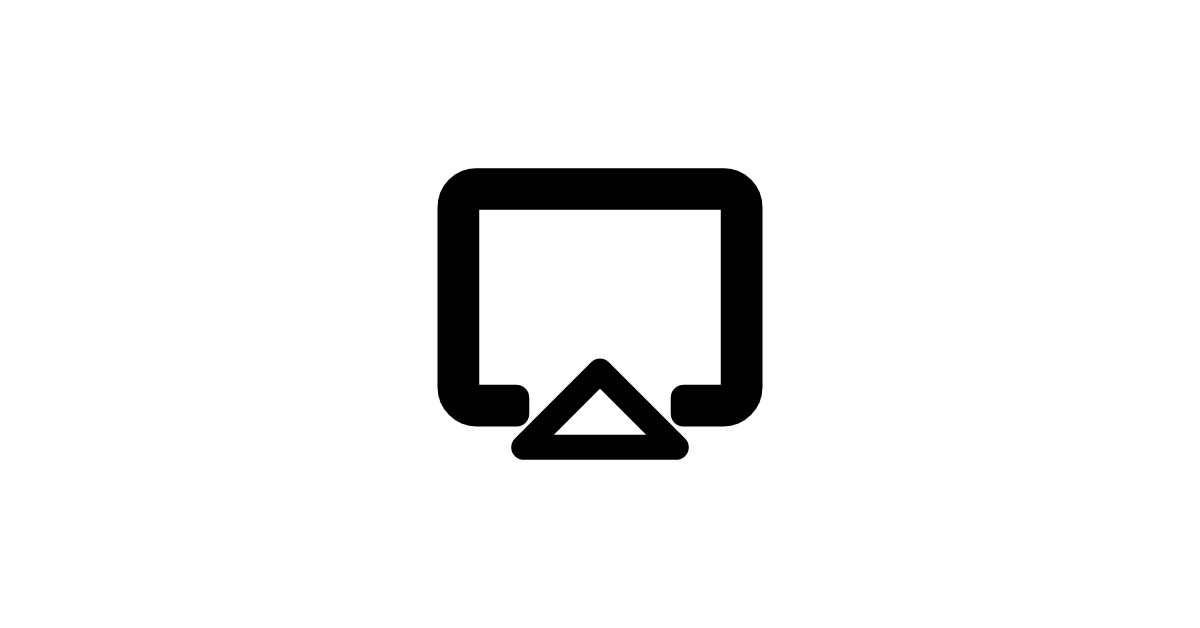 The airplay-outline icon represents the AirPlay feature, a wireless streaming technology developed by Apple, used for playing video, audio, or images from an iOS device to a compatible receiver, in an outlined style.