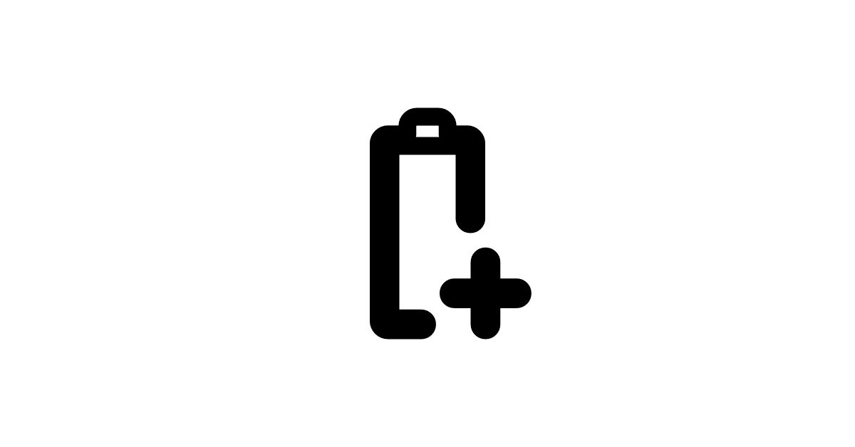 The battery-plus-outline-rounded icon represents a battery with a plus sign in an outlined and rounded design.