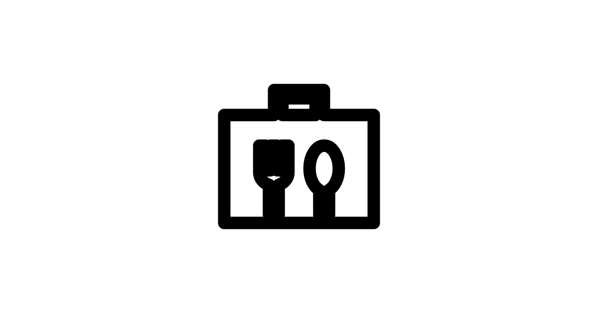The briefcase-meal-sharp icon represents a meal or food in a briefcase, similar to its rounded counterpart.