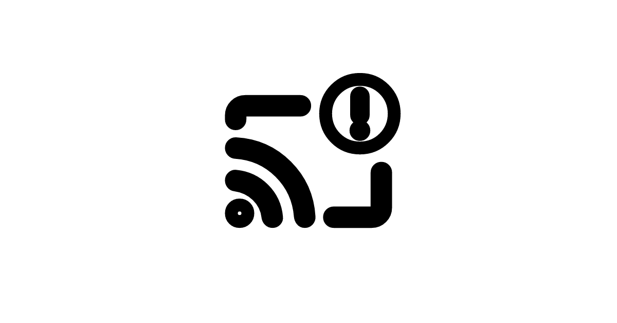 The cast-warning-outline-rounded icon represents a casting or projection symbol with a warning or alert indicator, outlined in a simple and minimalistic style with rounded corners.