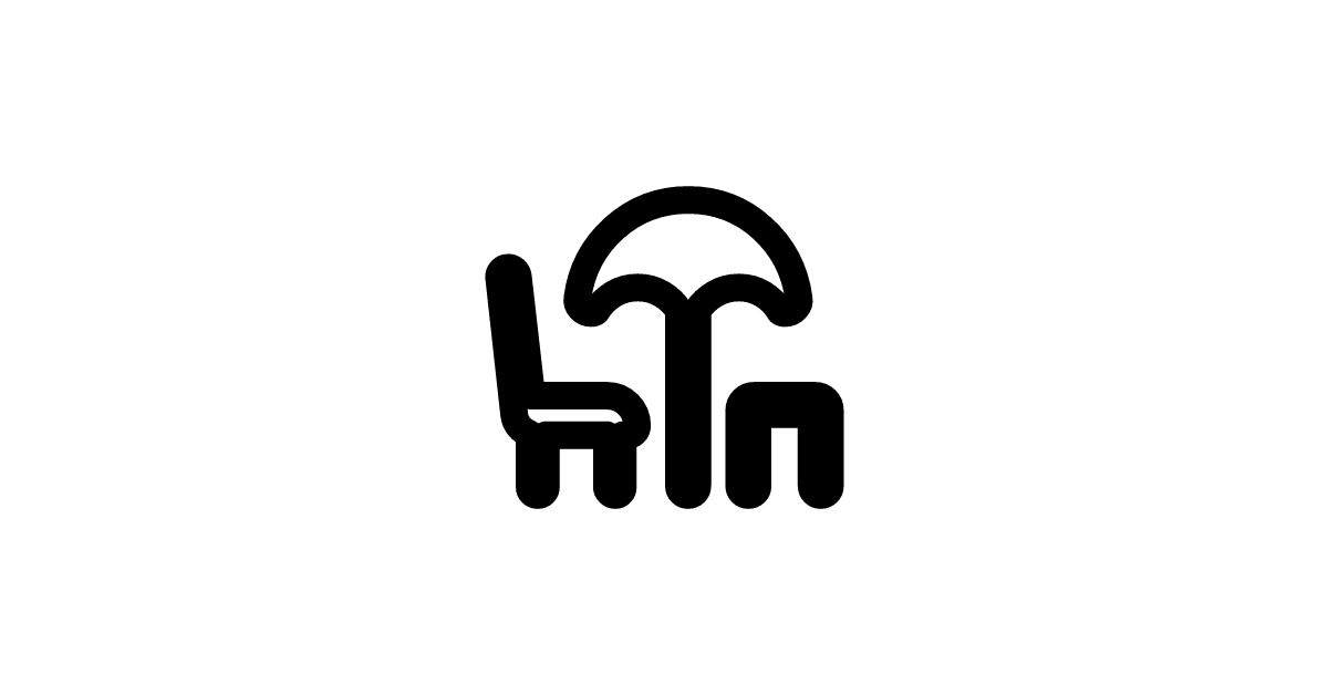 The chair-umbrella-rounded icon represents a cozy seating arrangement with a protective cover, often found in outdoor settings like beaches or parks.