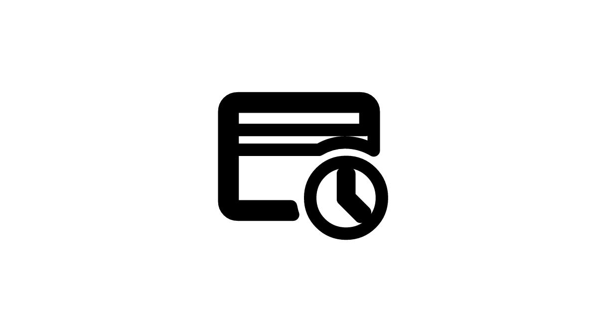 The credit-card-clock-outline icon represents an outlined version of a credit card combined with a clock, likely indicating a payment or billing schedule.