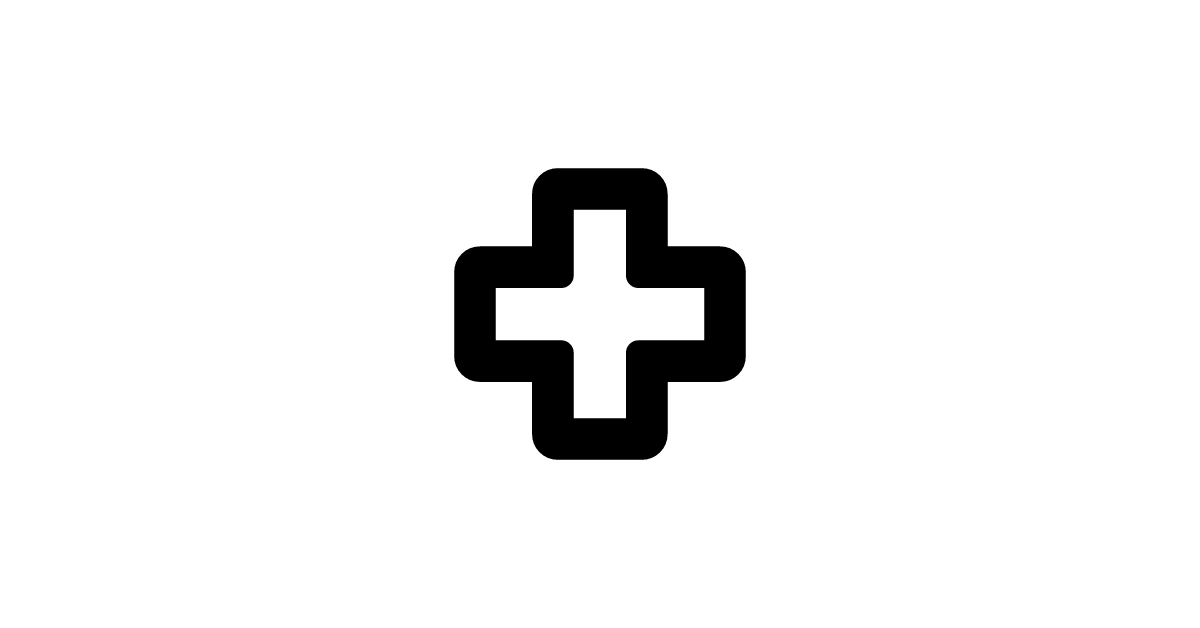 The health-cross-outline-rounded icon represents a rounded, outlined medical cross symbol, used to signify medical care or health services in a subtle and friendly manner.