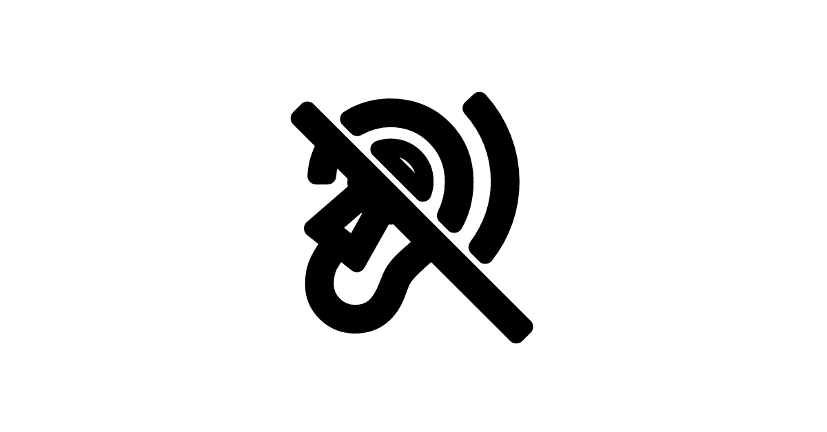 The hearing-aid-disabled-outline icon represents a hearing aid device in a disabled or inactive state, with an outlined style, often used to symbolize hearing loss or impairment.