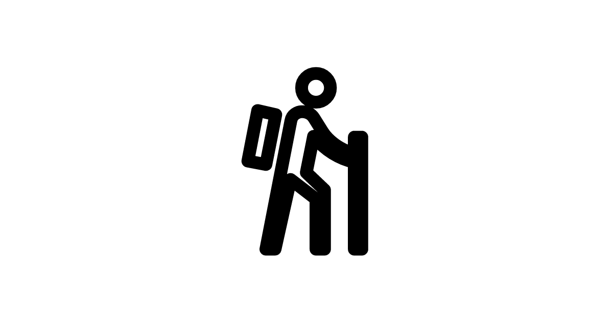 The hiking-sharp icon represents a person engaging in outdoor recreational activity, specifically hiking or trekking, with a sharp design.