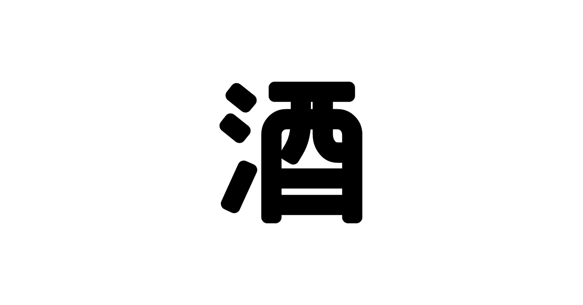 The kanji-alcohol icon represents the Japanese character for alcohol, often used to denote drinks or beverages in a cultural context.