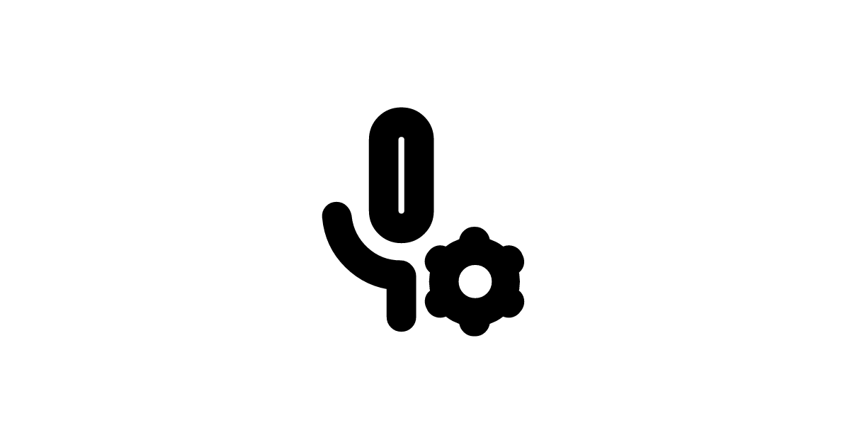 The mic-gear-outline-rounded icon represents a rounded version of a microphone with a gear or settings symbol, indicating configuration or adjustment options for audio recording or transmission.