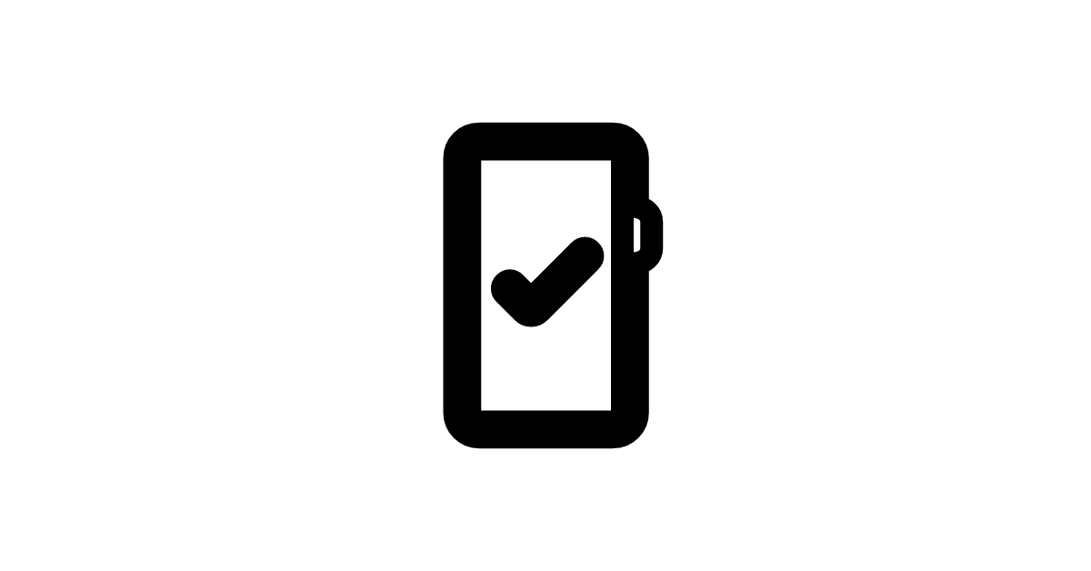 The mobile-check-outline-rounded icon represents a checkmark or verification symbol with an outline style and rounded corners on a mobile device.