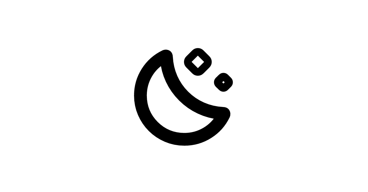 The moon-stars-outline-rounded icon represents a stylized, outlined version of the moon accompanied by stars in the night sky, with rounded corners.