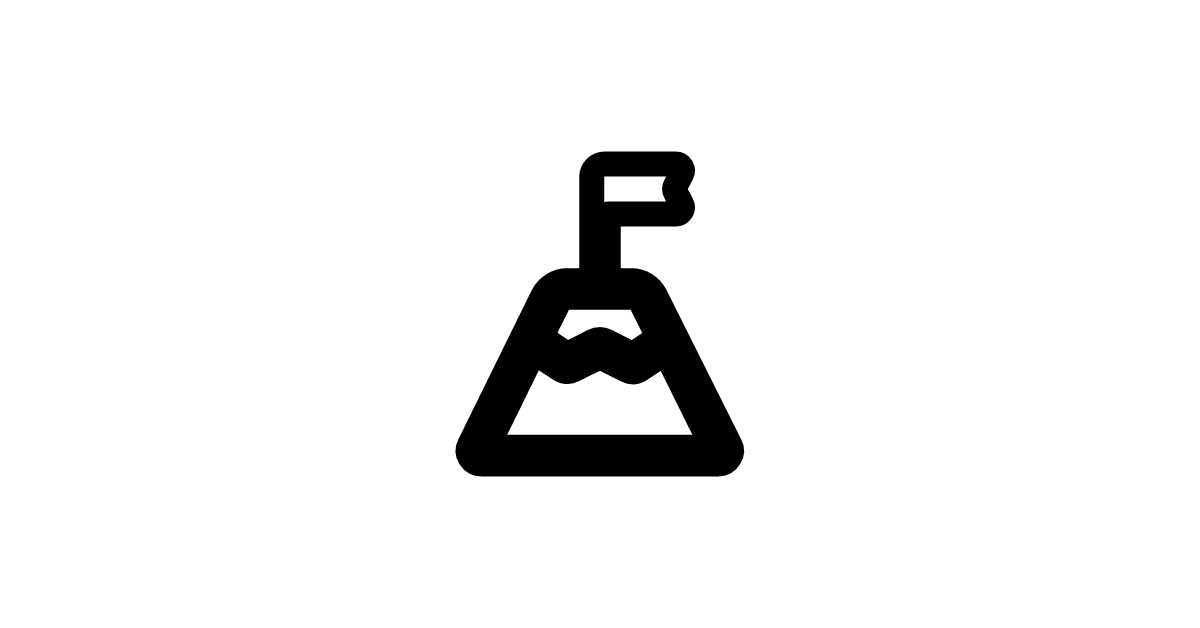 The mountain-flag-outline-rounded icon represents a stylized flag on a mountain, often used to signify adventure and outdoor recreation.