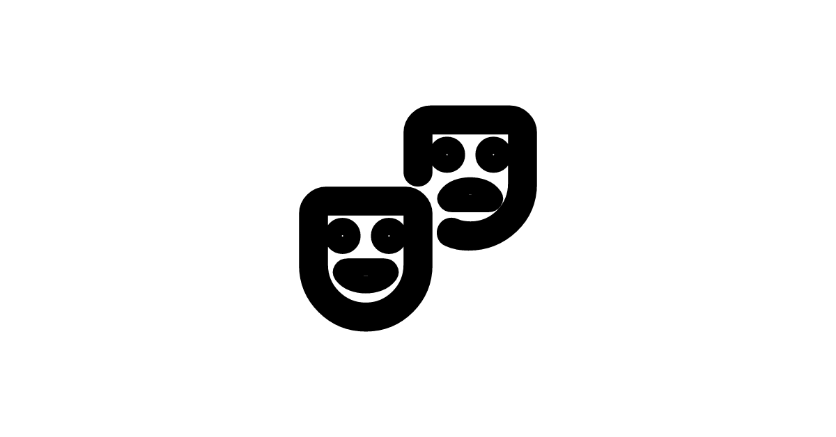 The theater-comedy-outline-rounded icon represents a material design element related to comedy or theater performances, with an outlined and rounded style.
