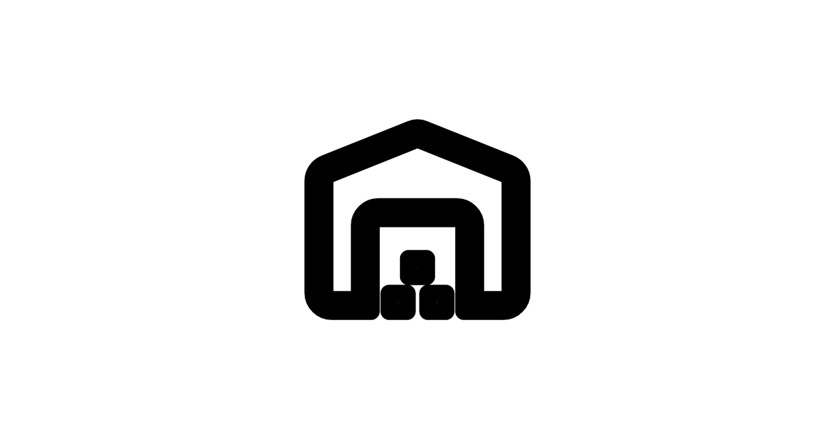 The warehouse-outline-rounded icon represents a rounded outlined storage facility or warehouse.