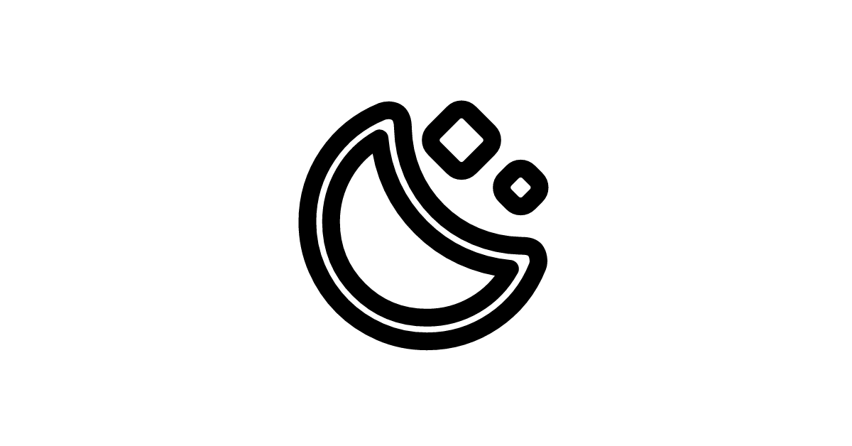 The moon-stars-outline-rounded icon represents a stylized outline of the moon and stars in the night sky with a rounded shape, symbolizing a sense of wonder and exploration.