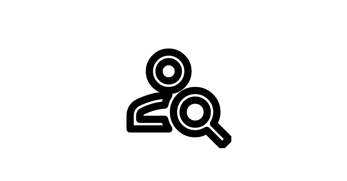 The person-search-outline icon represents the action of searching for a person, often used in user management or profile search interfaces.