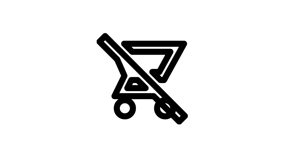 The shopping-cart-off-outline-sharp icon represents a shopping cart with a line through it, indicating that it is empty or offline, with a sharp corner style.