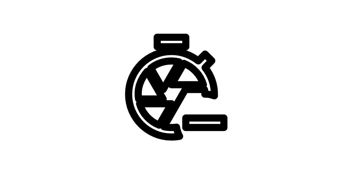 The shutter-speed-minus-outline icon represents the reduction or subtraction of shutter speed settings in a camera or photography context, with an outlined style.
