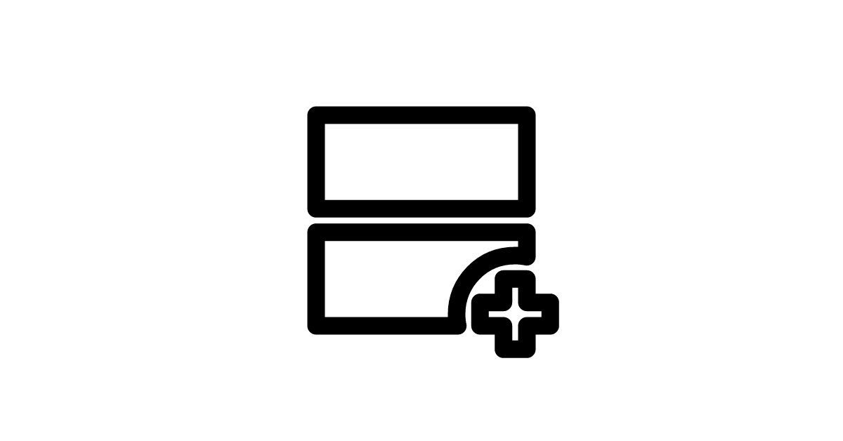 The splitscreen-add-sharp icon represents a sharp symbol for adding a new pane or view to a split-screen interface.