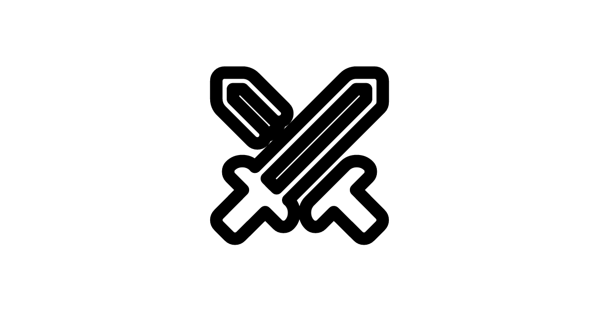 The swords-outline-rounded icon represents a stylized pair of swords with an outlined design and rounded corners, often associated with a softer or more approachable aesthetic.