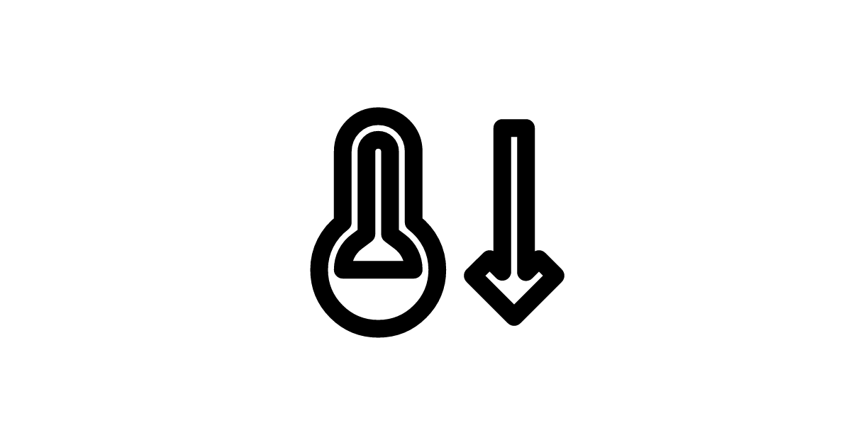 The thermostat-arrow-down icon represents a decrease in temperature setting, often used in heating, ventilation, and air conditioning (HVAC) contexts.