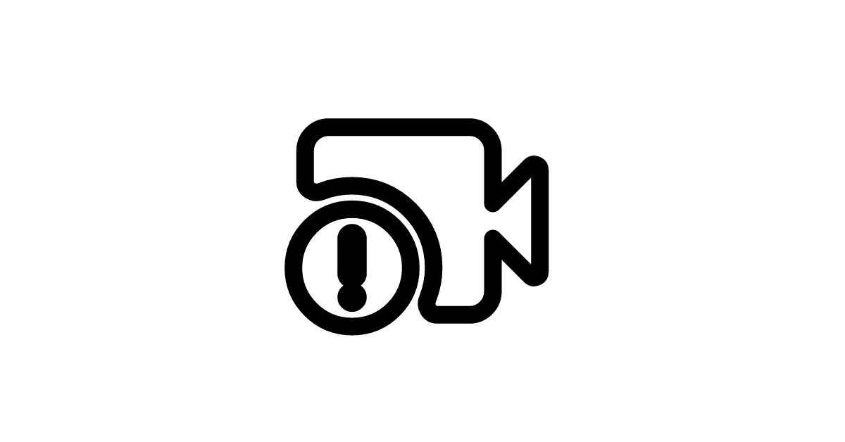 The videocam-alert-rounded icon represents a video camera with a rounded alert or warning notification.