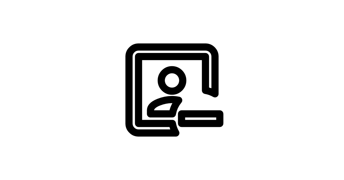 The account-box-minus-outline icon represents a user profile removal element, specifically a box or container for removing an account with an outline.