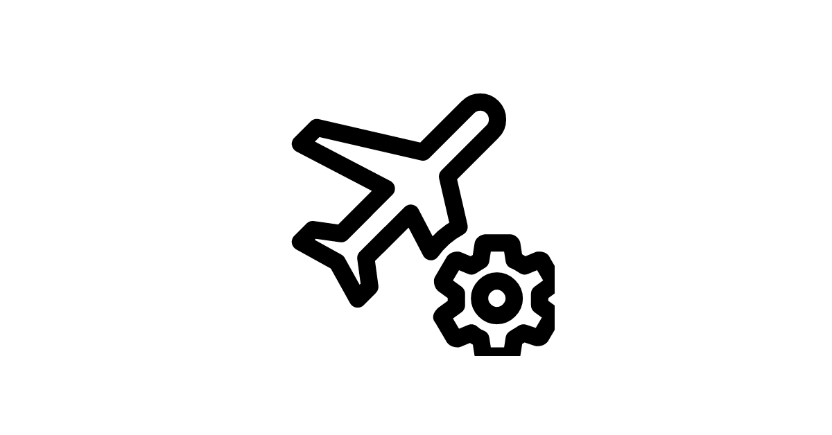 The airplane-cog icon represents a commercial airliner with a cogwheel or settings symbol, indicating configuration or maintenance.