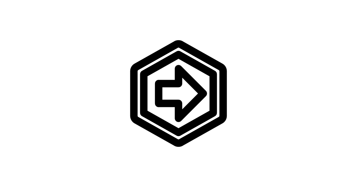The arrow-right-bold-hexagon-outline icon represents a bold and prominent directional arrow pointing to the right, enclosed in an outlined hexagon, often used to indicate navigation or movement in various applications.