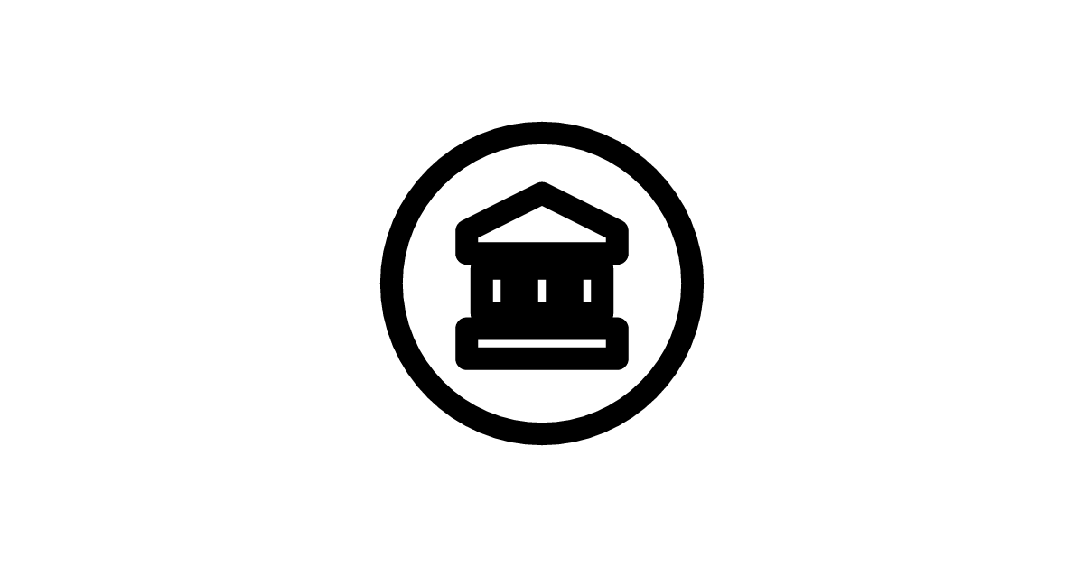 The bank-circle icon represents a bank or financial institution, often used as a logo or symbol.